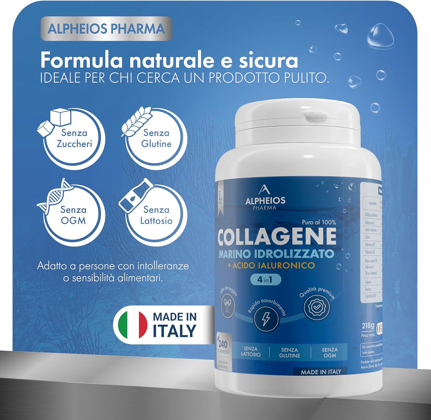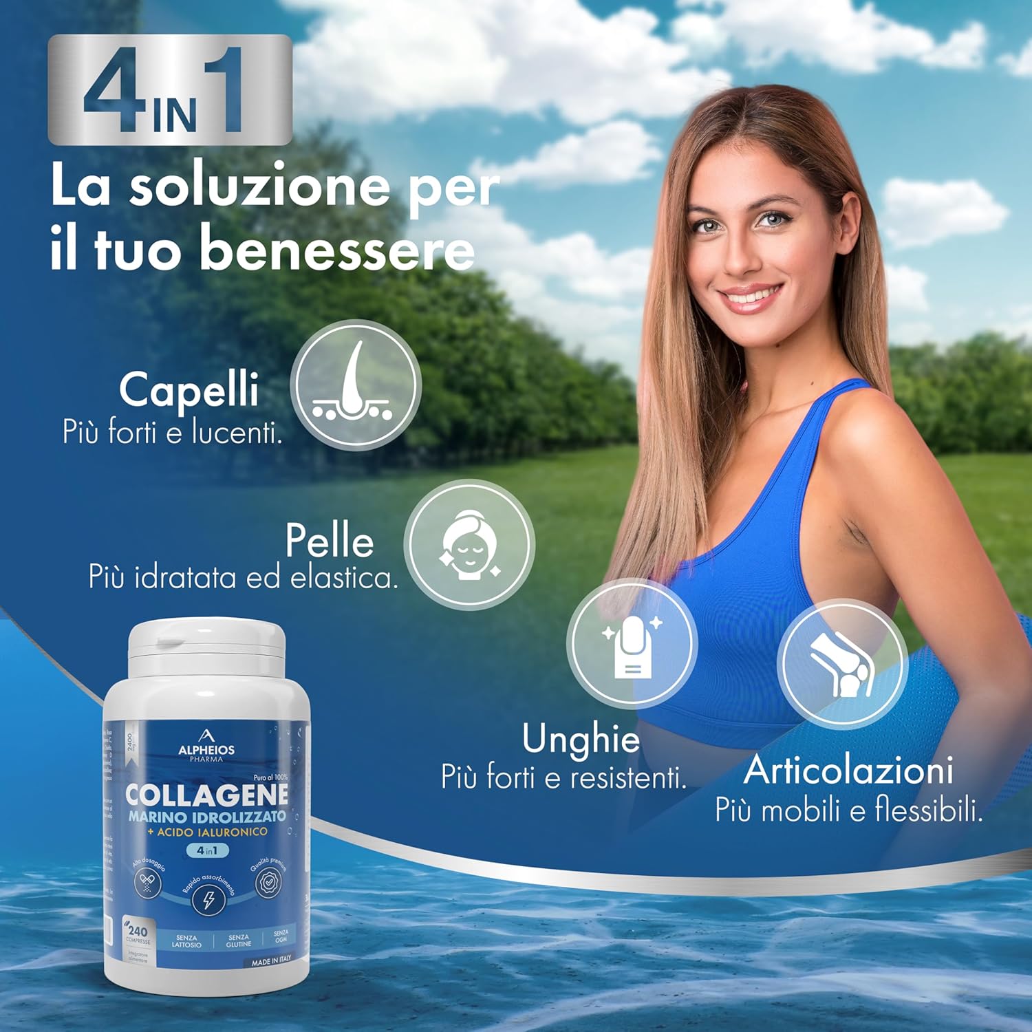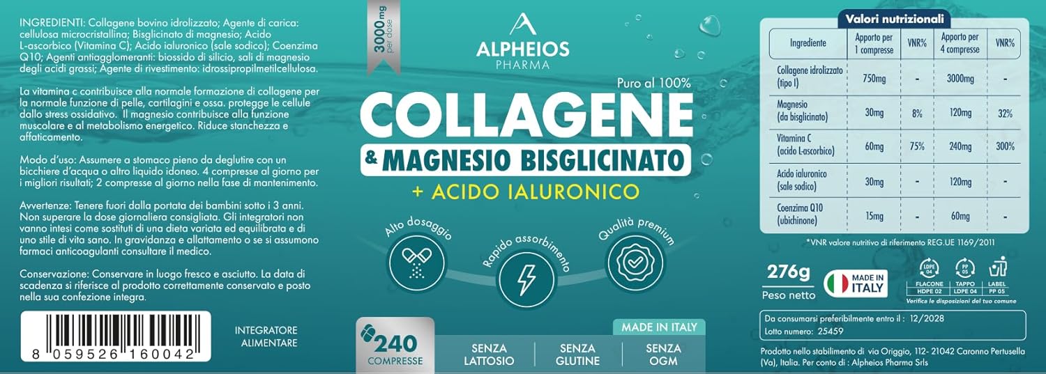 [COLLAGENE IDROLIZZATO AD ALTO DOSAGGIO 3000 mg] – Formula concentrata con 750 mg di collagene per compressa, ideale per sostenere elasticità cutanea, forza di tendini e ossa e migliorare la mobilità articolare. L’assorbimento rapido favorisce una maggiore biodisponibilità rispetto alle comuni formulazioni in polvere.