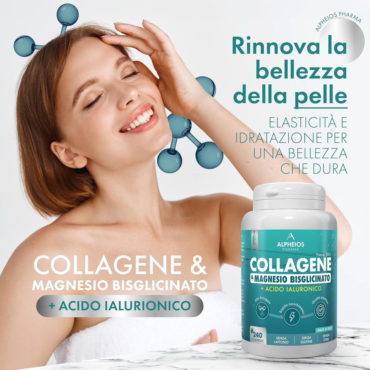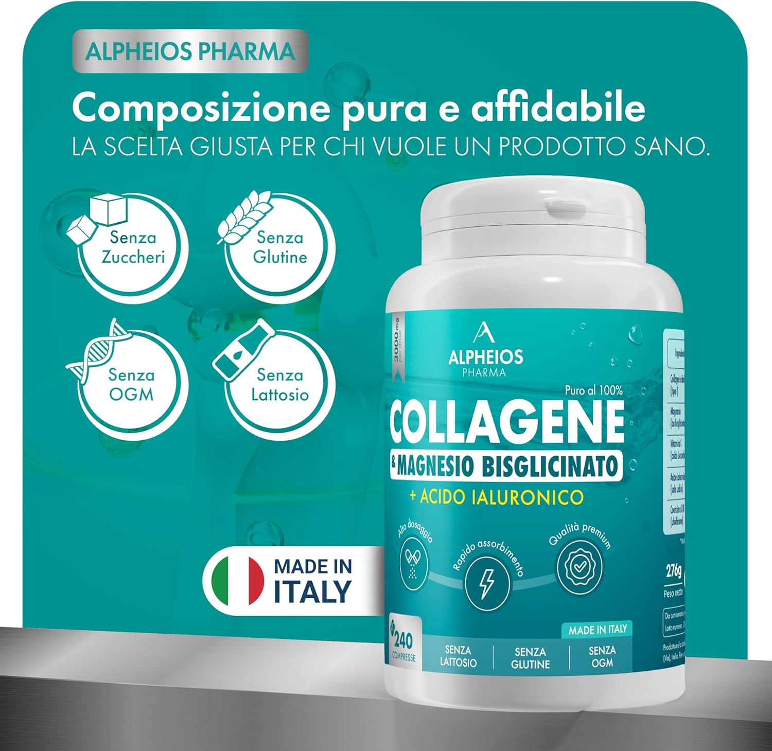 [SOSTEGNO COMPLETO PER ARTICOLAZIONI, OSSA E PELLE] – Ideale per chi pratica sport o conduce una vita attiva. Aiuta a mantenere articolazioni flessibili, ossa forti e pelle più elastica e luminosa. L’azione combinata di collagene e magnesio supporta tendini, cartilagini e sistema muscolare.